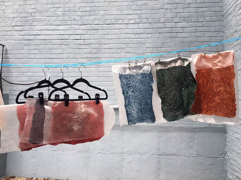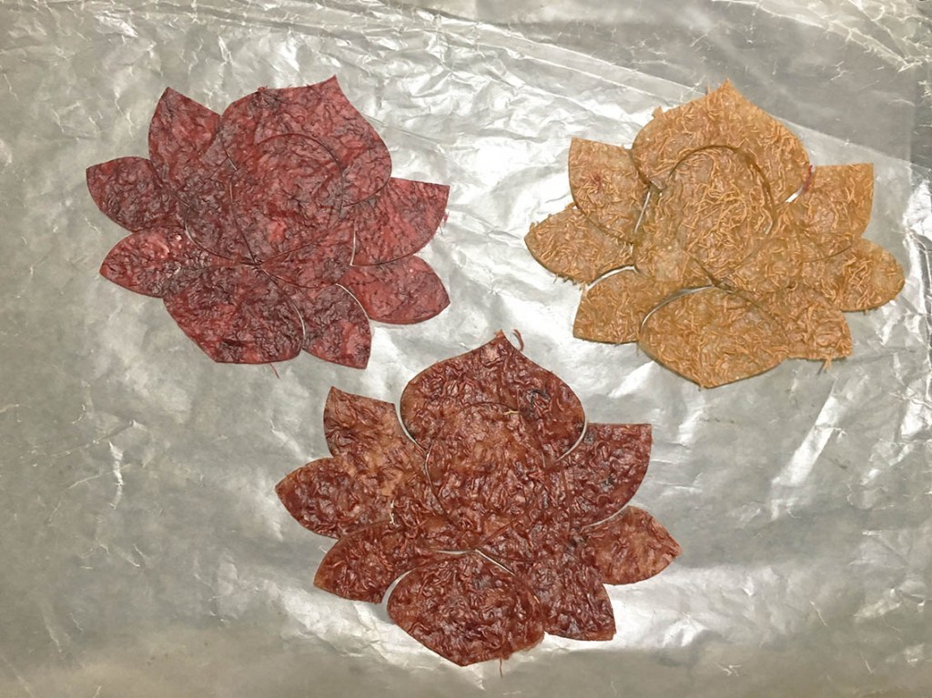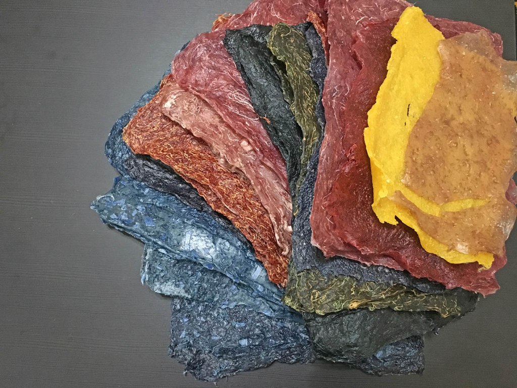 In exploration of the functionalities, aesthetics and efficiencies of the use plant based “bio-plastic”, this project utilized yarn waste from textile studio for coloring the translucent corn starch.